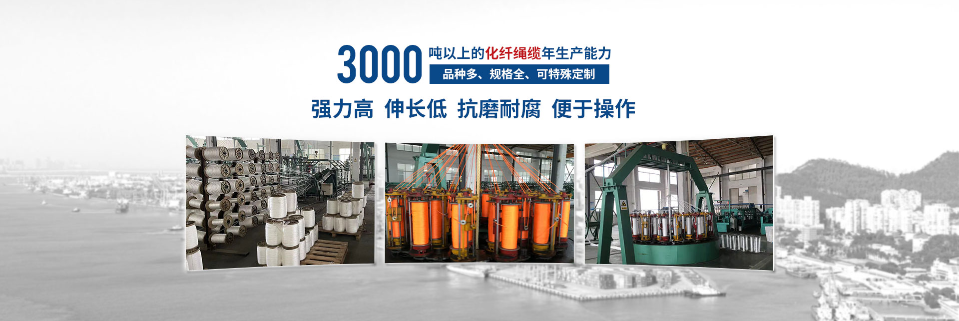 揚州神龍繩業(yè)有限公司,位于江蘇中部古城揚州北首,古運河畔,中國“荷藕之鄉(xiāng)”-寶應城西工業(yè)集中區(qū),該園區(qū)是省市中小企業(yè)創(chuàng)業(yè)示范基地、揚州市優(yōu)化發(fā)展園區(qū)。揚州神龍繩業(yè)有限公司是一現(xiàn)代化新型化纖繩纜的生產(chǎn)企業(yè)。交通便捷,京杭大運河和京滬高速穿境而過,環(huán)境生態(tài)優(yōu)美。截止2022年12月底,公司實際擁有固定資產(chǎn)5200多萬元,占地建筑面積20000多平方米,標準廠房四棟及水電辦公設(shè)施齊全,機構(gòu)設(shè)置:經(jīng)理辦、技術(shù)質(zhì)量部、生產(chǎn)部、銷售部、綜合部。公司聘用10名繩纜行業(yè)高級技術(shù)人員,技術(shù)力量雄厚。擁有國內(nèi)高速三股機,六股機、八股、十二股、雙層編織制繩設(shè)備和拉絲設(shè)備。計量、理化、檢測手段齊全。企業(yè)已獲得GB/T19001-2016/ISO19001:2015質(zhì)量體系認證證書及中國船級社(CCS)、法國船級社(BV)、挪威德國船級社(DNV.GL)、日本(NK)工廠認可證書。于2016年12月取得了解放軍裝備承制單位注冊證書,獲得了高新技術(shù)產(chǎn)品的認定證書、江蘇省民營科技企業(yè)稱號,并獲得了實用型專利,“高強度無捻絲滌綸樹脂插編復合繩”,專利號“ZL 2017 2 0221636.8”和多股牽引繩纜、高強度無捻絲海洋勘探耐磨腐防蝕止合成纖牽引繩高新技術(shù)產(chǎn)品認定證書。為祖國的邊防和航運業(yè)貢獻一點力量。按國際標準生產(chǎn)“繩龍”牌化纖繩纜,品種多、規(guī)格全、年生產(chǎn)能力達3000噸以上。主要生產(chǎn)錦綸(聚酰銨)、丙綸(聚丙烯)、滌綸(聚酯),超高分子聚乙烯等系列產(chǎn)品,結(jié)構(gòu)有;三股、四股、六股、八股、十二股、雙層編織繩索。規(guī)格從Ф4mm~Ф120mm系列產(chǎn)品任你選擇。可根據(jù)客戶需要生產(chǎn)特殊用途規(guī)格繩索。具有強力高,伸長低、抗磨耐腐,便于操作。產(chǎn)品性能指標均符合相關(guān)的國際標準和國家標準要求,廣泛應用于遠洋運輸、船舶制造、漁業(yè)捕撈、港口作業(yè),國防軍工、石油勘探等領(lǐng)域,取得市場廣泛認可和市場占有率。近年來本公司奉行“以質(zhì)為本,誠信經(jīng)營,優(yōu)良服務(wù),顧客滿意”的宗旨,竭誠為廣大用戶提供優(yōu)良產(chǎn)品和服務(wù)。推動質(zhì)量管理的深入開展,加強員工的質(zhì)量意識,進一步提高產(chǎn)品質(zhì)量,滿足市場和用戶的需求,為用戶服務(wù)。
